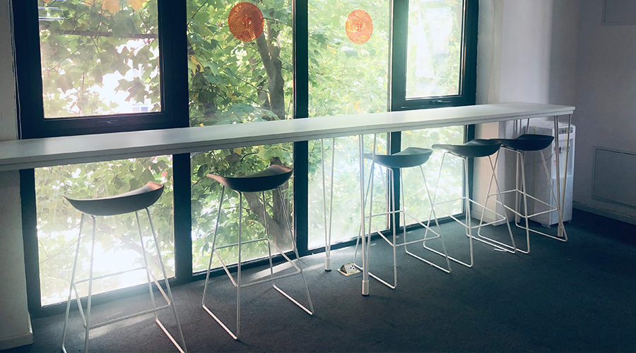 辦公室一角休息區,樹影斑駁映入室內,平添一份夏日的清涼與幽趣。下午茶時間,坐在這里泡上一杯咖啡,疲勞頓消,滿血復活。
