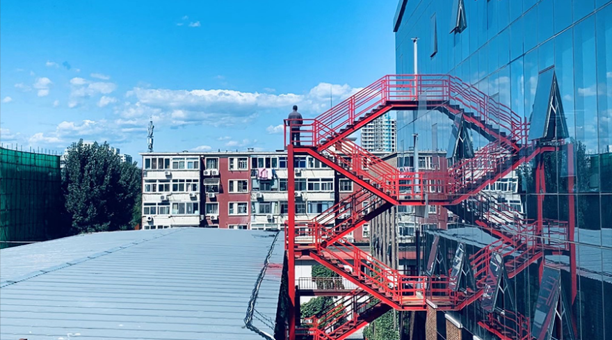 透過公司大會議室窗戶,藍天撲面而來,散發藝術氣息的紅色旋轉樓梯映入眼簾,人文與自然融為一體。工作之暇,放眼窗外,思維切換到另一個世界,豐富的創造力和卓越的執行力在這里醞釀。