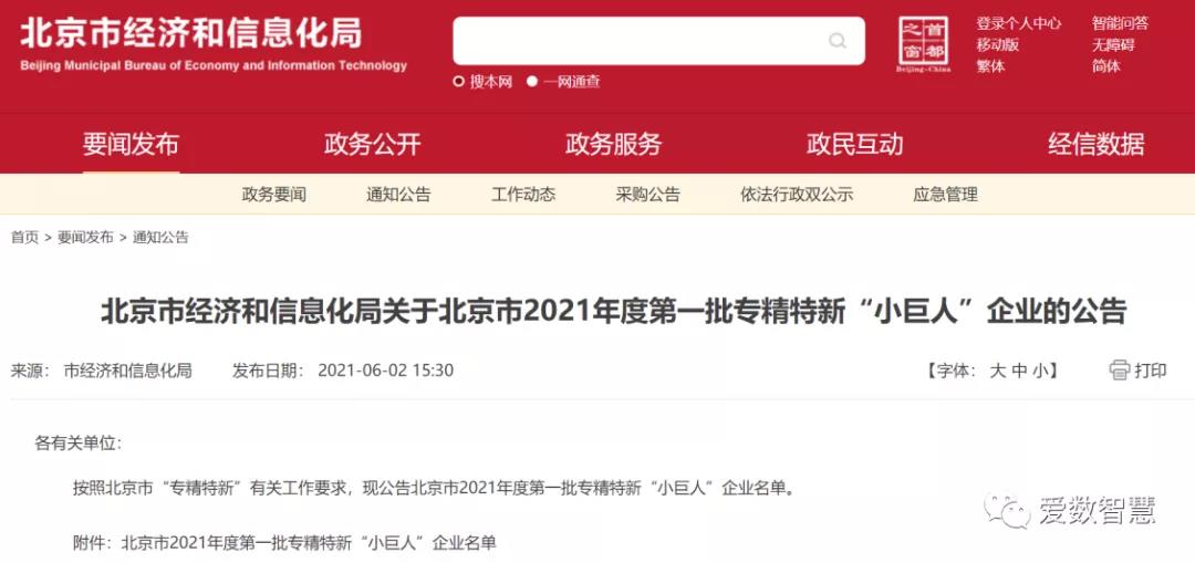 圖:北京市經濟和信息化局發布專精特新企業公告