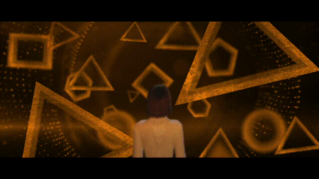 影片第二場,映入眼簾是美麗的多邊形,互相碰撞出清脆悅耳的聲響,如果大家仔細傾聽,似乎悅耳的碰撞聲背后夾雜熟悉的場景:汽車在疾馳、馬路上轟隆隆噪音、人與人親切的問候……